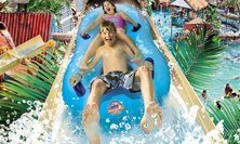 - Splash Landing Water Park boasts hundreds of fantastic interactive water features, from lazy rivers and crazy cannons, to the sensational speed of the Master Blaster water roller coaster. The Water parks Caribbean lagoon offers gallons of excitement for kids of all ages, and is open all year round