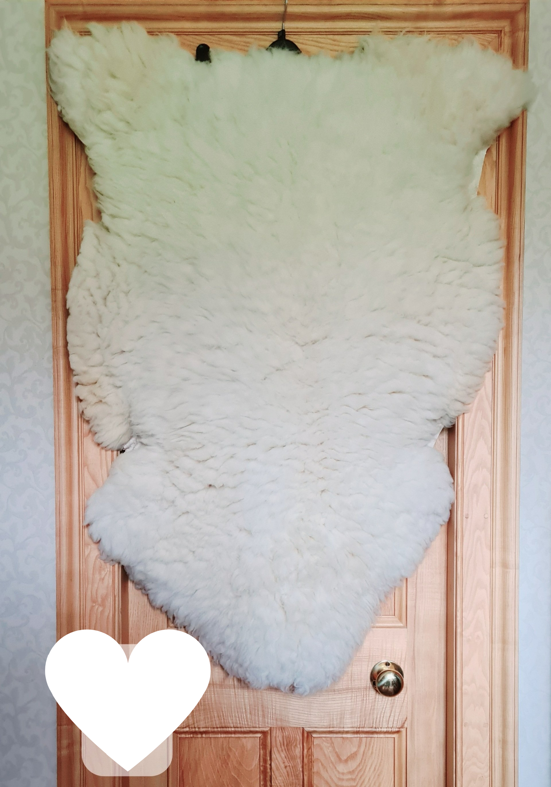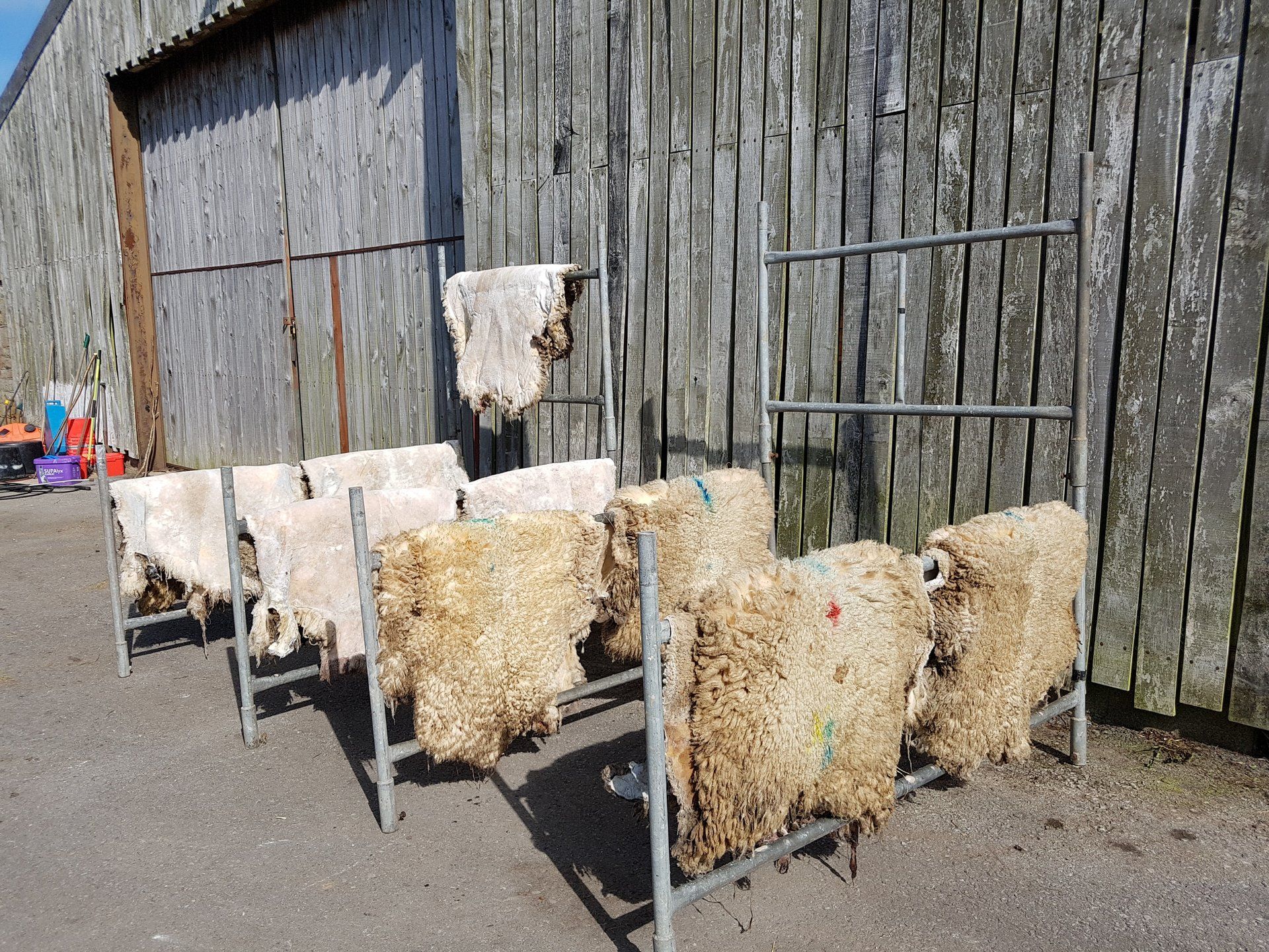 These are very special to us .... each skin has been carefully hand cured with natural salt.... and then dried with the Peak District sun and wind ..... we then sent them to one of the last remaining places in the UK for a traditional 'curing' process (so many fleeces now go over the China etc!!) .... this process takes many weeks... up to 30+ weeks!