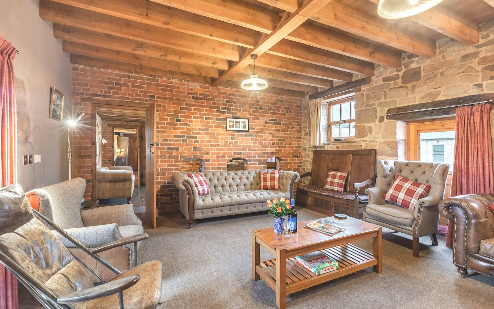 Full character of original barn retained with quality conversion - with exposed wooden beams, A-frames, brick and stone work