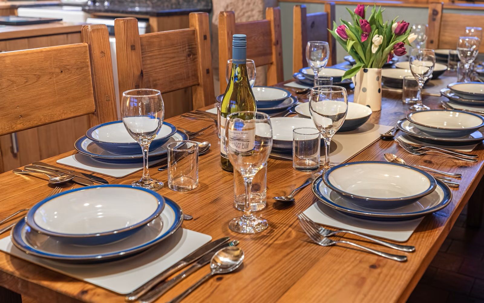 The fully-equipped kitchen was hand crafted by a local carpenter from oak and with oak and marble worktops. It as an electric oven(double oven) and hob, microwave, dishwasher and large fridge freezer. The large dining table seats 10+ people (plus 1 highchair) and is locally made from wood, as are the dining chairs, benches and most of the beds and bedroom furniture - supporting local and natural materials is important to us!