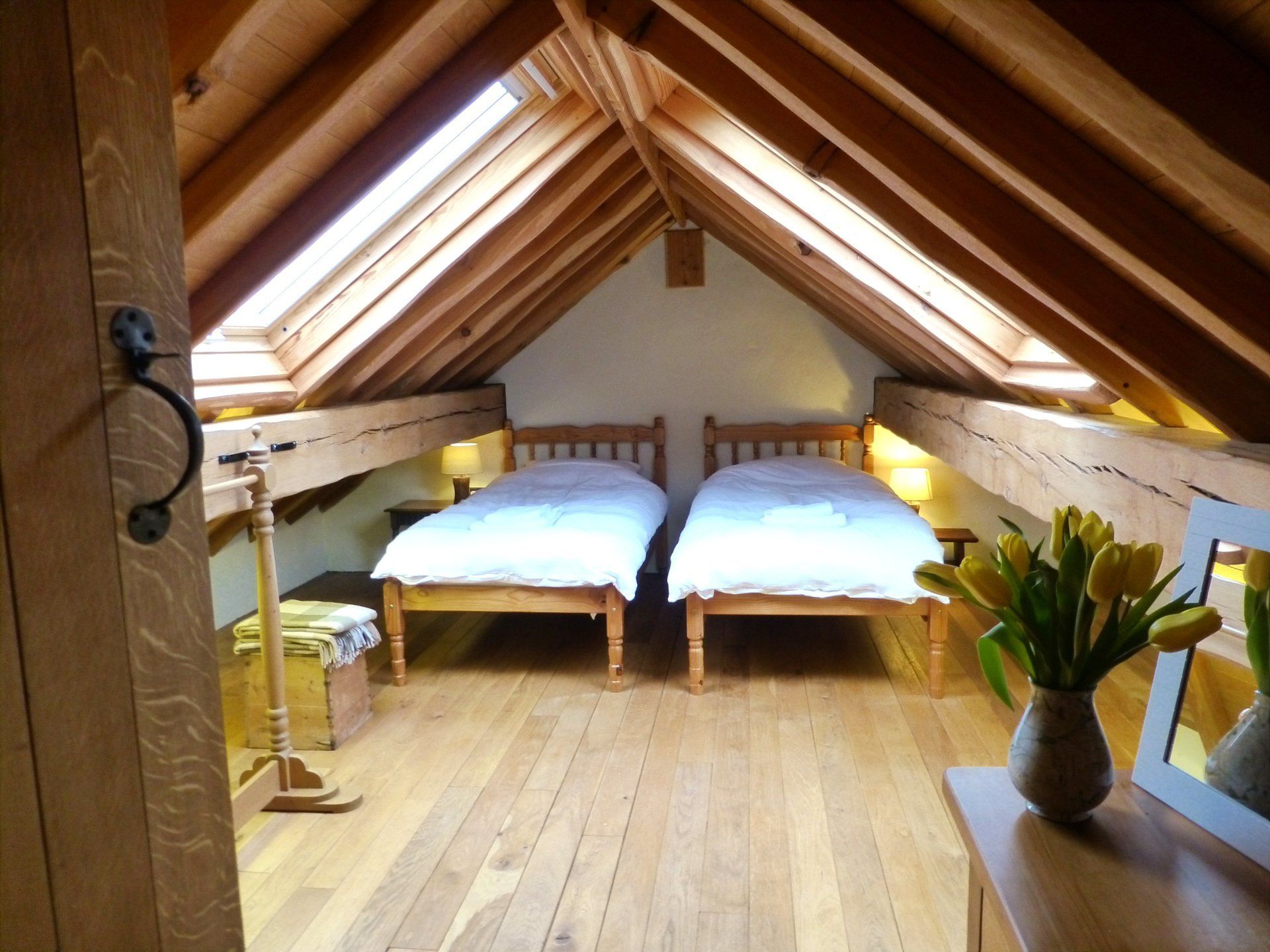 On the second floor is another twin room with vaulted roof ceilings and 2 velux windows, again with fine views over the countryside.